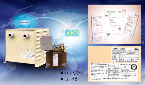 Nunome사의 NCT는 EN 규격 EN61558-2-4, UL 규격 UL506, CSA 규격 C22.2의 요구사항에 적합하고 Transformer로서 전기적 특성화 / 안정성에 대해